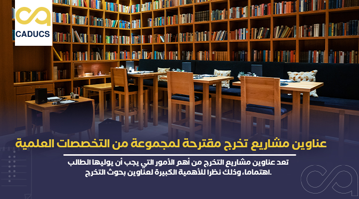عناوين مشاريع تخرج هي العبارة التي تعبر عن محتوى المشروع وتلخص فكرته في عنوان واحد قصير وملائم، يعد العنوان المناسب من أهم العناصر التي يجب أن تعتمد عليها عند كتابة مواضيع مشروع التخرج لأنه يعبر عن نوع المشروع ويجعله مميزًا في مجتمع العلوم الذي تنتمي له، لذلك تقدم شركة كادوكس CADUCS أفضل الاقتراحات لعناوين بحوث تخرج في جميع المجالات والتخصصات الأكاديمية عناوين نتيجة بحث ودراسة وعلم.